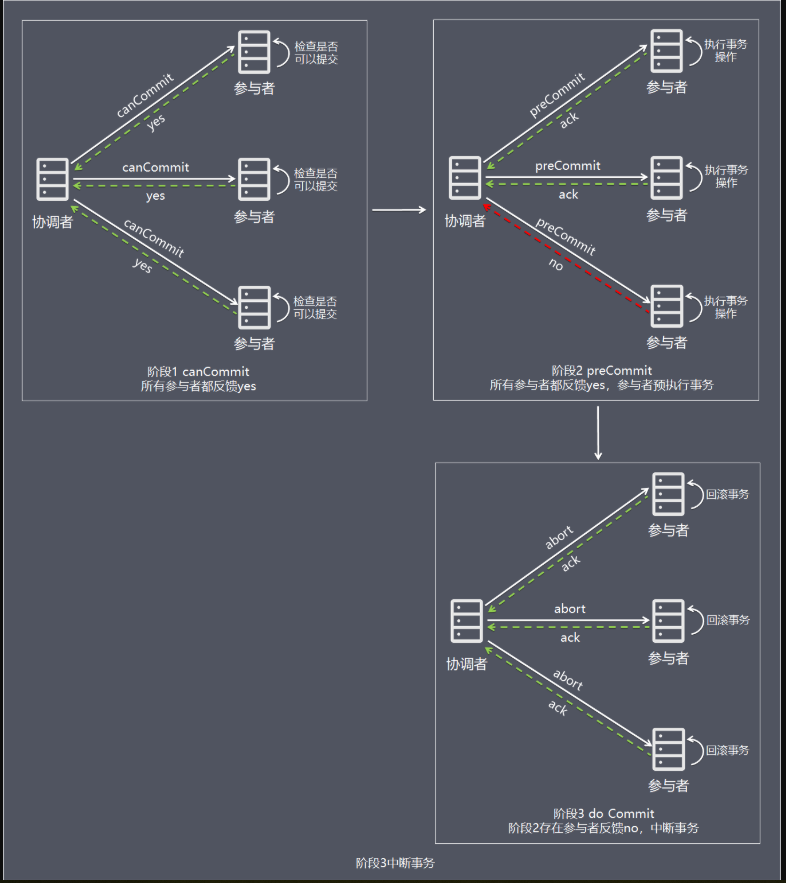 - 事务的原子性 事务操作跨不同节点,当多个节点某一节点操作失败时,需要保证多节点操作的**要么什么都不做,要么做全套(All or Nothing)**的原子性。