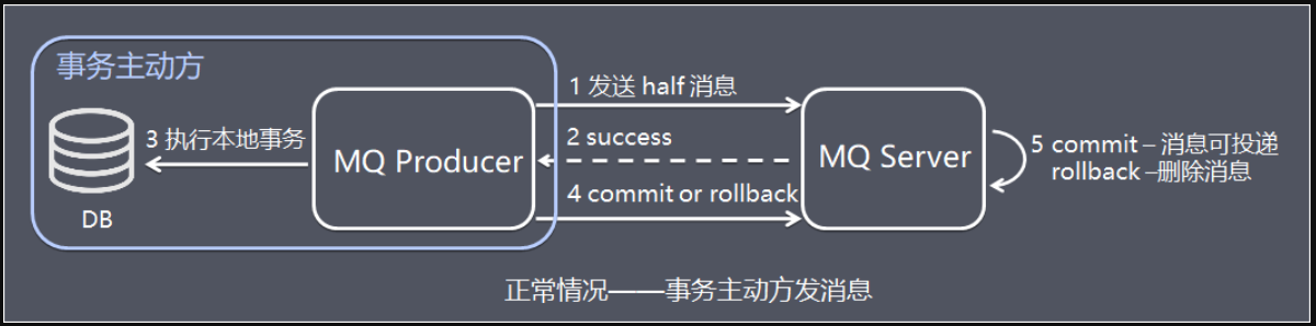 正常情况——事务主动方发消息 这种情况下,事务主动方服务正常,没有发生故障,发消息流程如下: